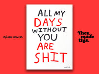 We ship 90% of orders 2-3 times a week with a Royal Mail tracked service. For framed orders and orders from our photography collection please allow 12-20 working days for delivery. You can also ‘click and collect’ from our stores. International orders may be subject to customs fees, please see link below. If you need your order to arrive for a particular date, please email orders@theymadethis.co.uk