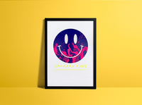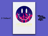 This 4-colour screenprint blends photographic grit with hand-drawn flair, capturing the raw chaos and glow of an underground rave. A fluoro red base layer sets the whole piece on fire—think street lights, brake lights, and strobe lights all colliding in a haze of late-night euphoria.