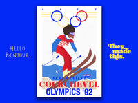 This three part ski series is inspired from vintage ski posters and reimagined Slim Aarons esque female torsos. 'Jump' reads the top line of the print. 'Saut' for your country in the winter olympics, jump for your fellow females, empower each other and represent real people!