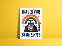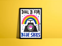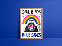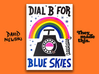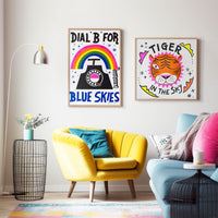 An additional foil layer is added to this print by screen printing an adhesive, then hand foiling with silver for the telephone clicker and the shade lenses. As this is screen-printed all the colours are thick and strong. The colours truly jumps out.