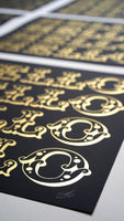 PRINT TYPE Hand pulled screen print with 23 carat gold leaf