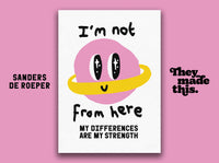 OTHER INFORMATION Sanders de Roeper artworks are created to uplift, connect, and manifest joy. Using vibrant colours, heartfelt messages, and accessible design, each piece celebrates community, positivity, and the beauty found in everyday life. Every print is hand-embossed with the Sanders de Roeper mark in the bottom right corner.