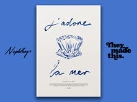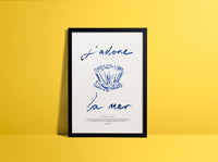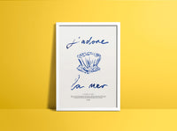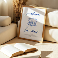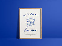 OTHER INFORMATION Meaning 'I adore the sea' in French, this print uses light brush strokes to create a subtle yet bold effect. In a striking aquamarine blue, this artwork is designed to add a touch of the sea to your home.