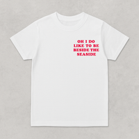 The 80's inspired t-shirt based on one of our best selling prints that references the great British music hall song. It was composed in 1907 when the yearly visits of the British working class to the seaside were booming. A song close to our hearts.