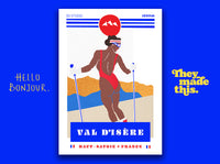 This three part ski series is inspired from vintage ski posters and reimagined Slim Aarons esque female torsos. A strong woman enjoying her winter sport. Perhaps she's headed to the après ski clubs, like The Folie Douce.