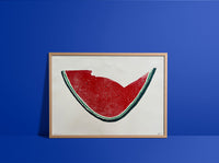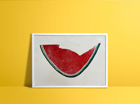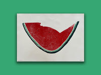 OTHER INFORMATION Part of our Alex Booker Watermelons exhibition, featuring nine new woodcut prints with paper sponsored by G.F. Smith. 50% of all print proceeds goes to Palestinian Health Workers Solidarity Fund.