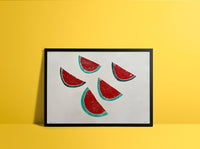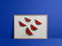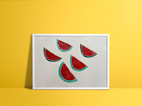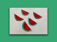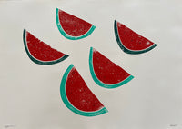 OTHER INFORMATION Part of our Alex Booker Watermelons exhibition, featuring nine new woodcut prints with paper sponsored by G.F. Smith. 50% of all print proceeds goes to Palestinian Health Workers Solidarity Fund.