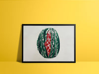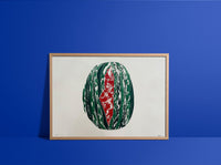 OTHER INFORMATION Part of our Alex Booker Watermelons exhibition, featuring nine new woodcut prints with paper sponsored by G.F. Smith. 50% of all print proceeds goes to Palestinian Health Workers Solidarity Fund.