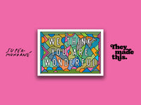 We ship 90% of orders 2-3 times a week with a Royal Mail tracked service. For framed orders and orders from our photography collection please allow 12-20 working days for delivery. You can also ‘click and collect’ from our stores. International orders may be subject to customs fees, please see link below. If you need your order to arrive for a particular date, please email orders@theymadethis.co.uk