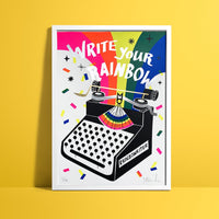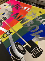 An additional foil layer is added to this print by screen printing an adhesive, then hand foiling with both silver and gold for super sunshine reflective happiness. As this is screen-printed all the colours are thick and strong. The colours truly jumps out.
