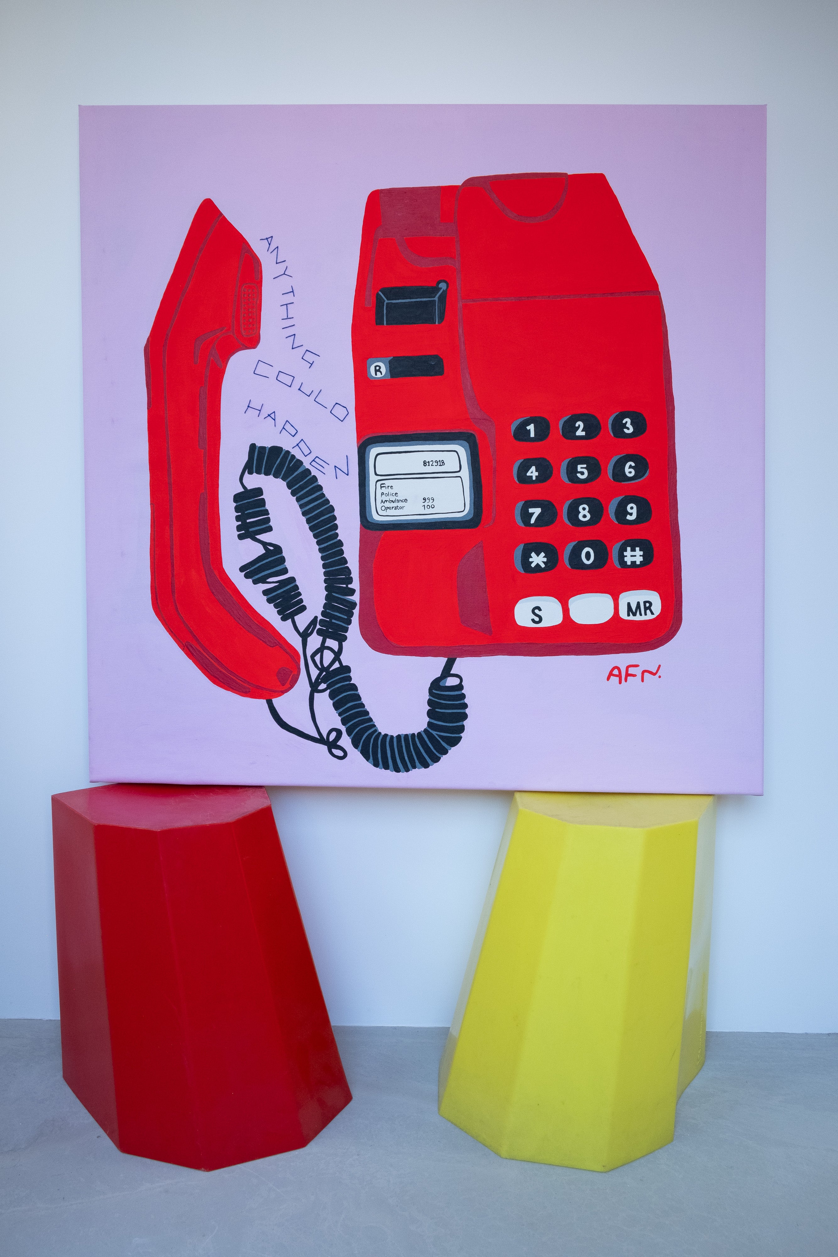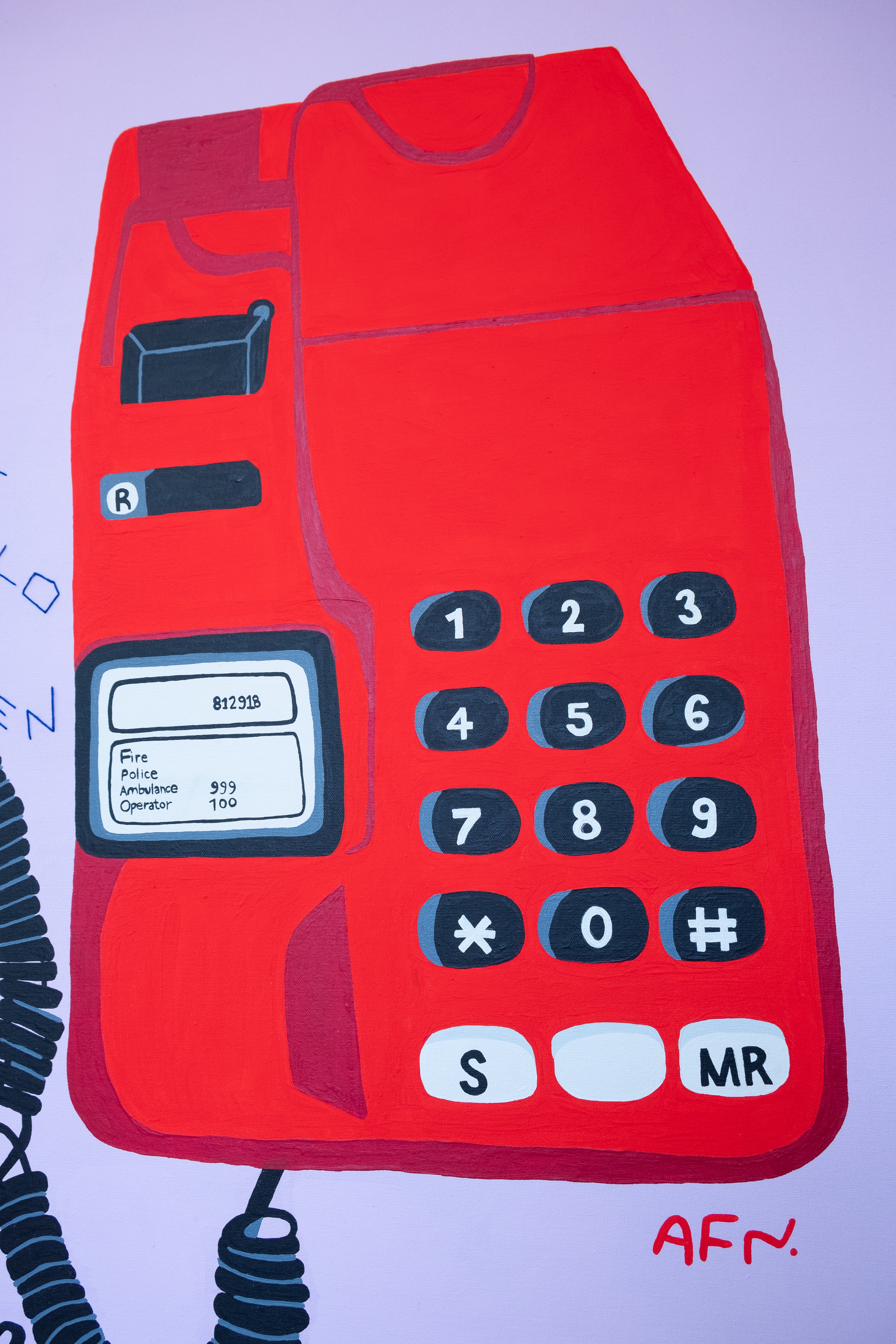 TYPE Acrylic and embroidery on canvas, wall hanging