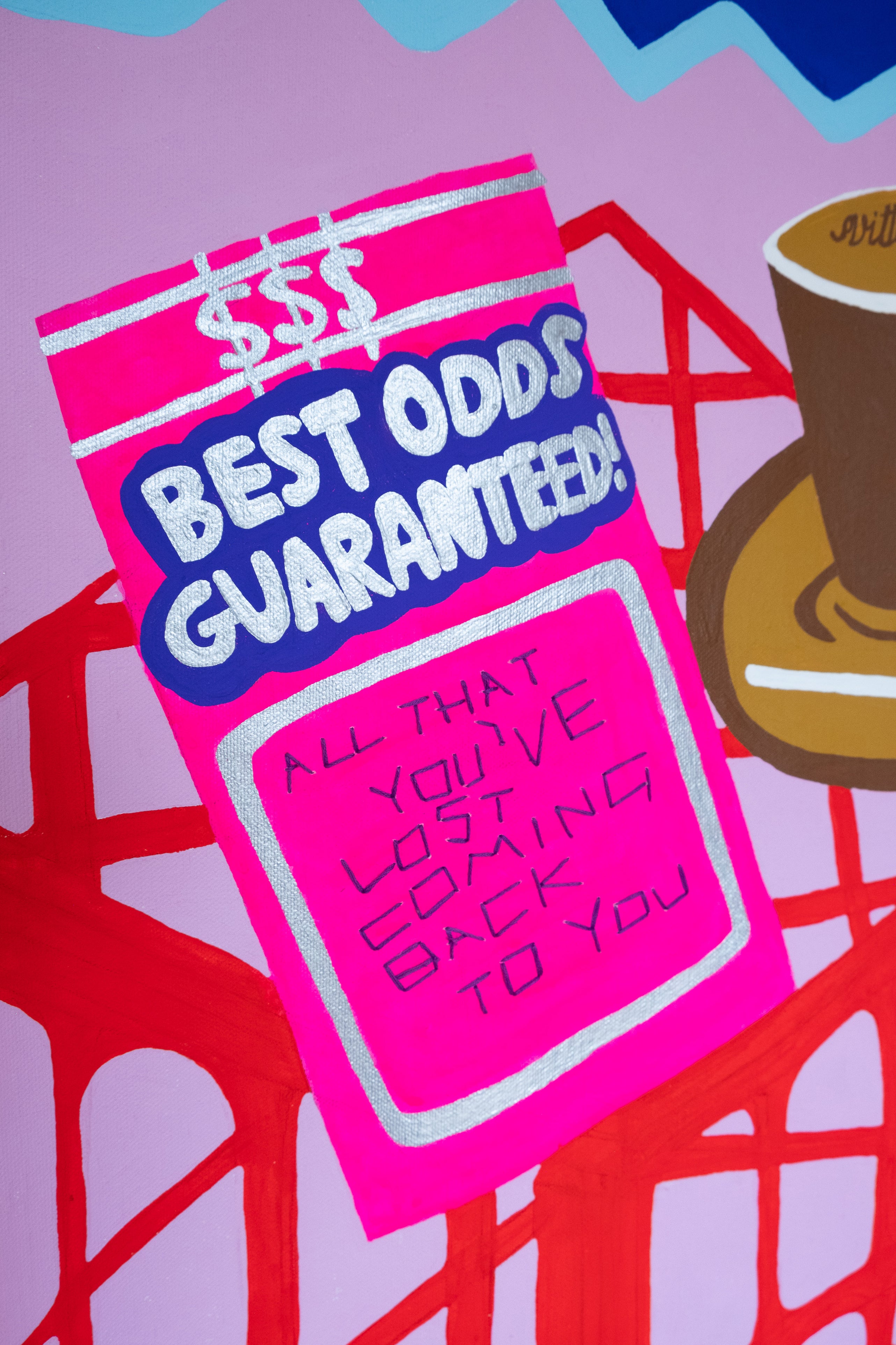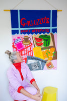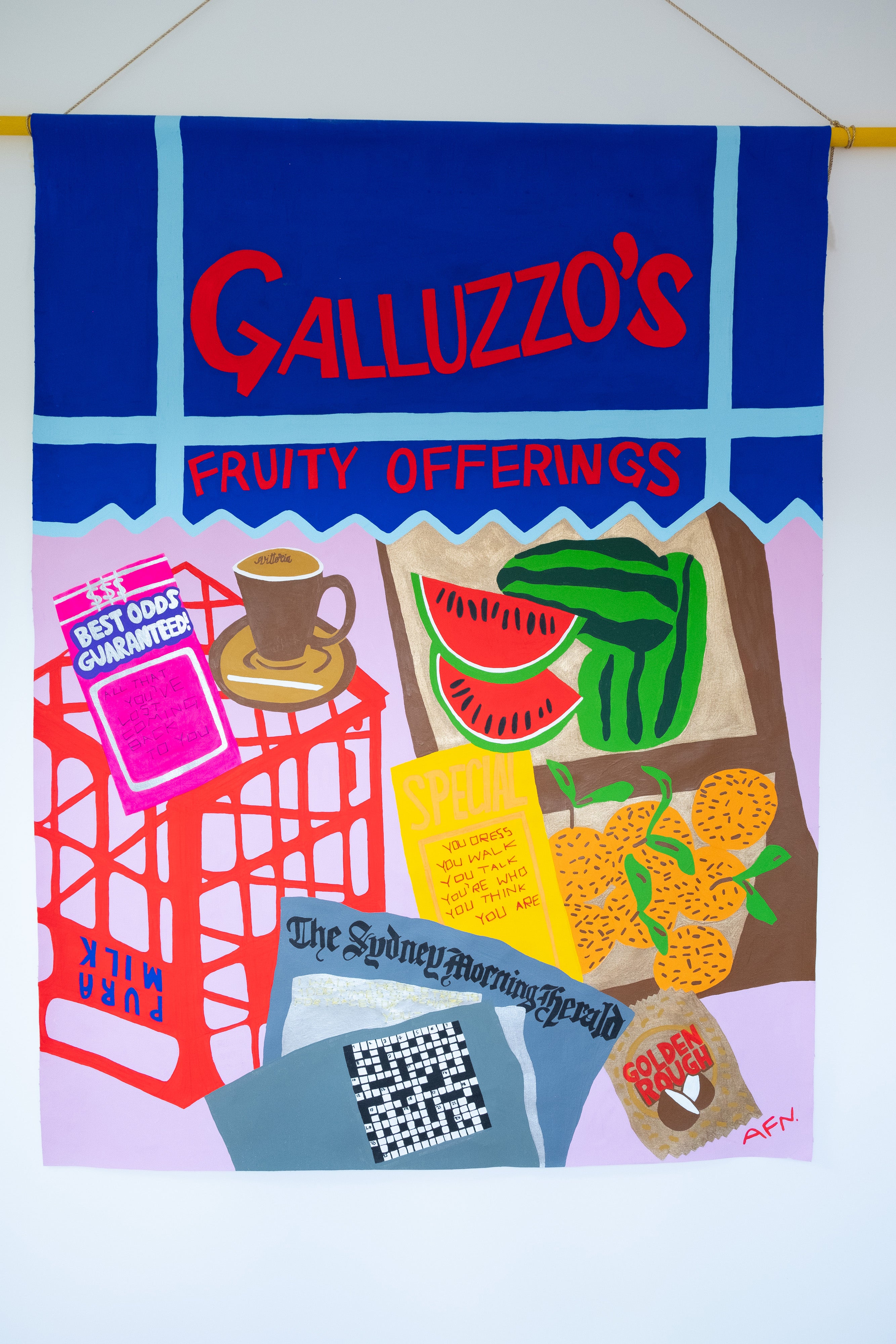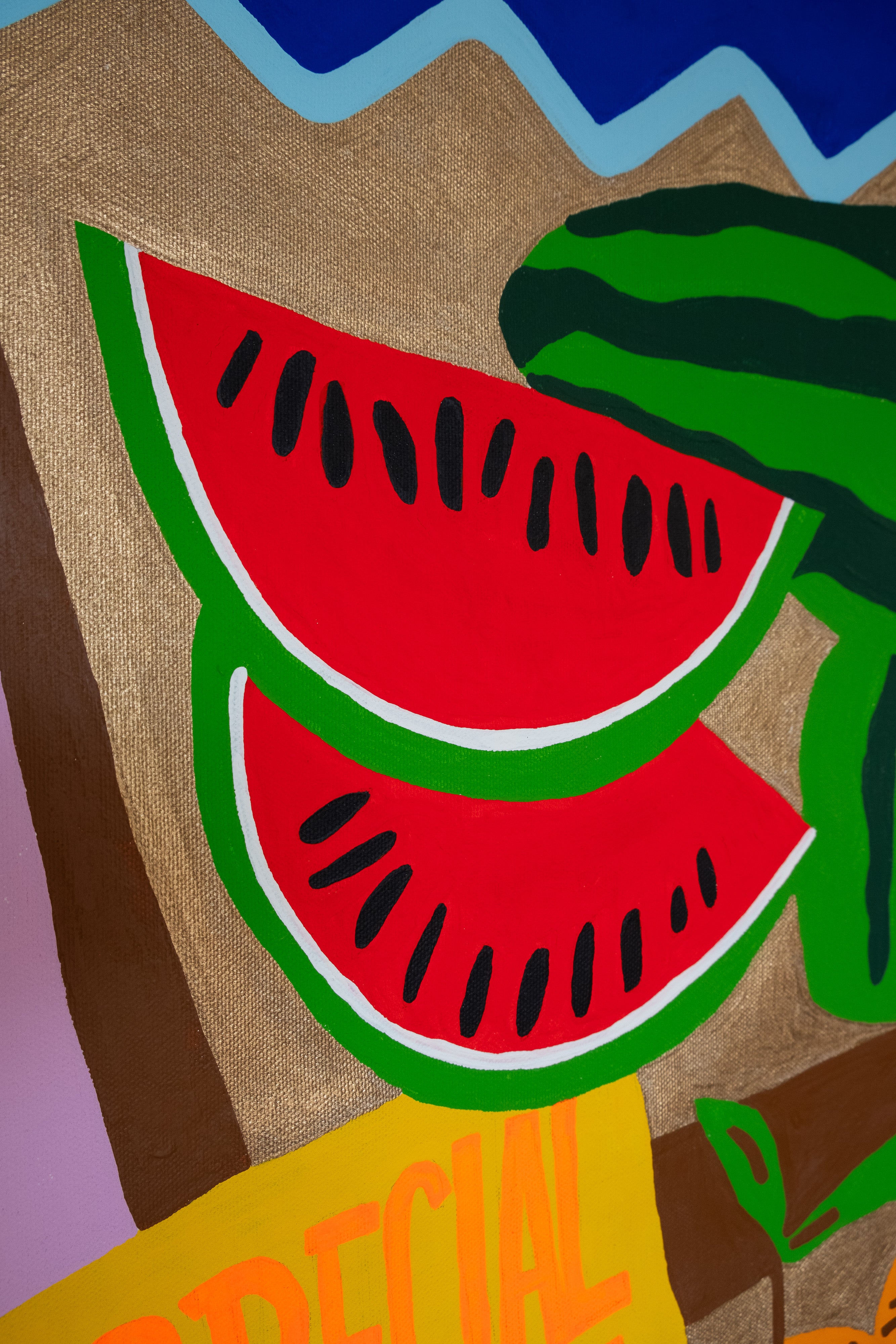 TYPE Acrylic and embroidery on canvas, wall hanging