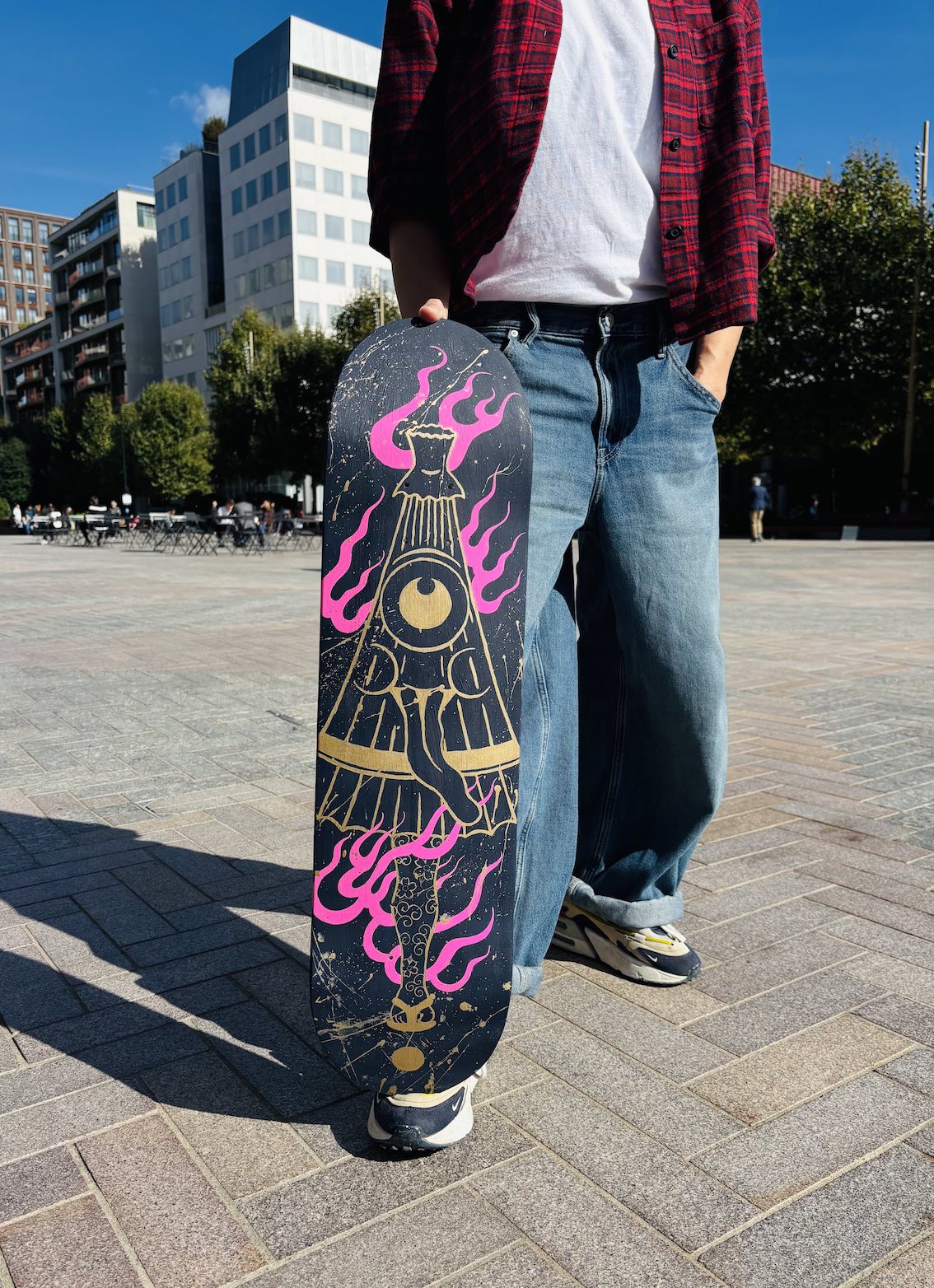 From ‘Decked’, the September 2025 exhibition presented by They Made this and Nobody's Business tattoo studio. A showcase of 30 skateboard decks transformed into original artworks by a collective of internationally acclaimed contemporary tattoo and graphic artists.