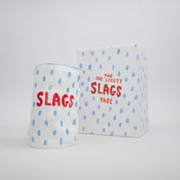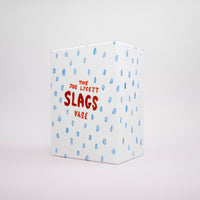 Duchess China 1888 are the last historic Fine Bone China manufacturer in the UK and have been creating ceramics for over 135 years. Working with the likes of Harrods, Fortnum & Mason, The House of Commons and the King of bloody Great Britain, they’ve now stooped to making a handmade vase for me with the word ‘slag’ on it."