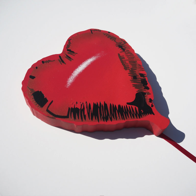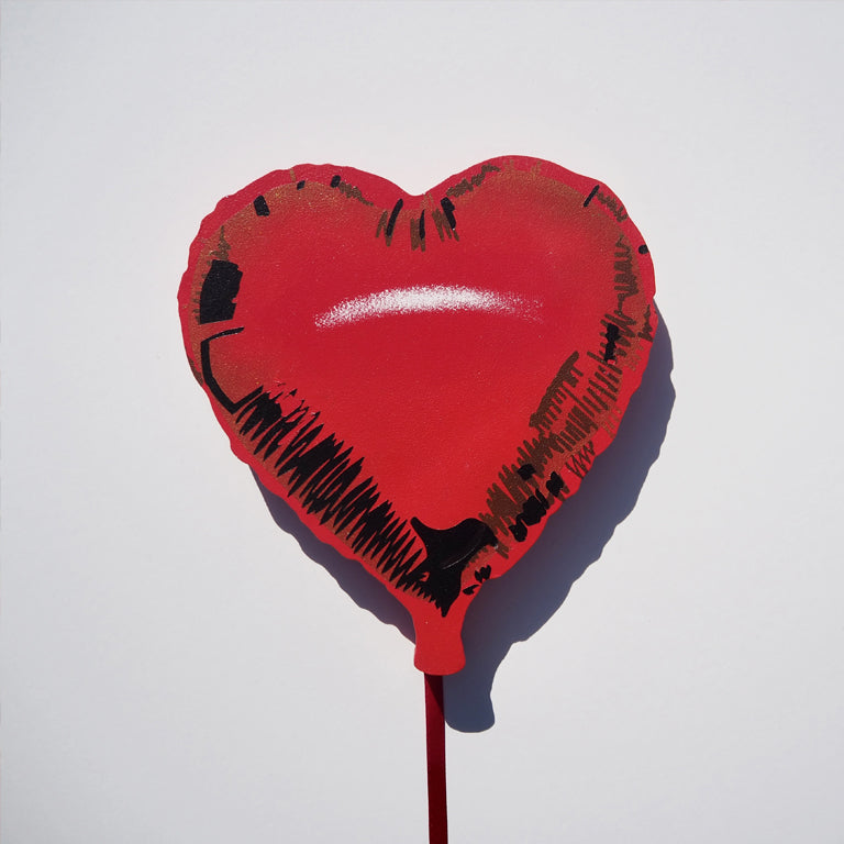 Inspired in equal part by Banksy, and my friend’s wedding (after which my ceiling was covered with red helium balloons), ‘Floating balloon’ is the next in a series of cut-outs featuring icons of popular culture.