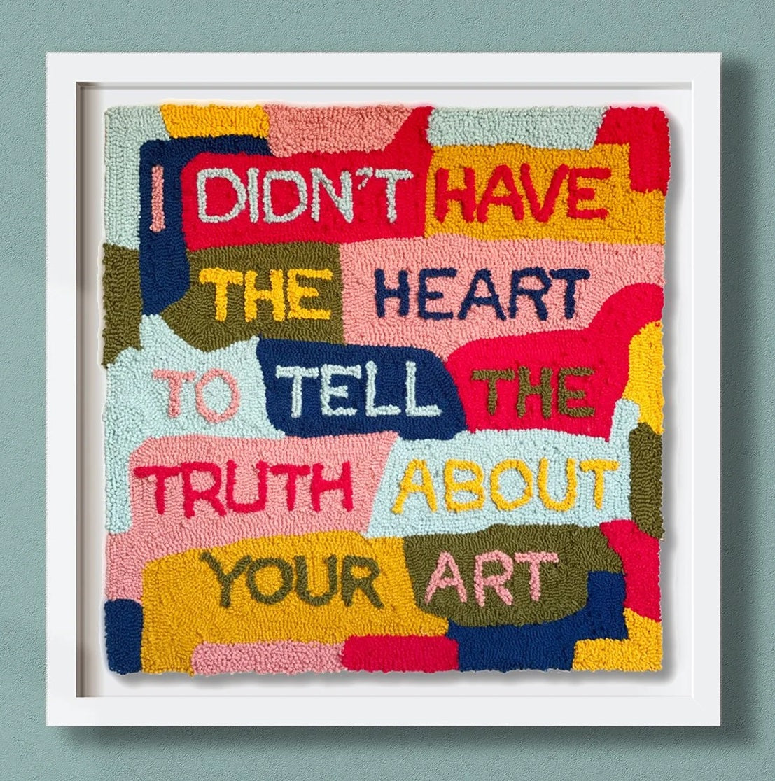 PRINT TYPE Handmade textile type piece made with colourful tufted wool on a monks cloth backing